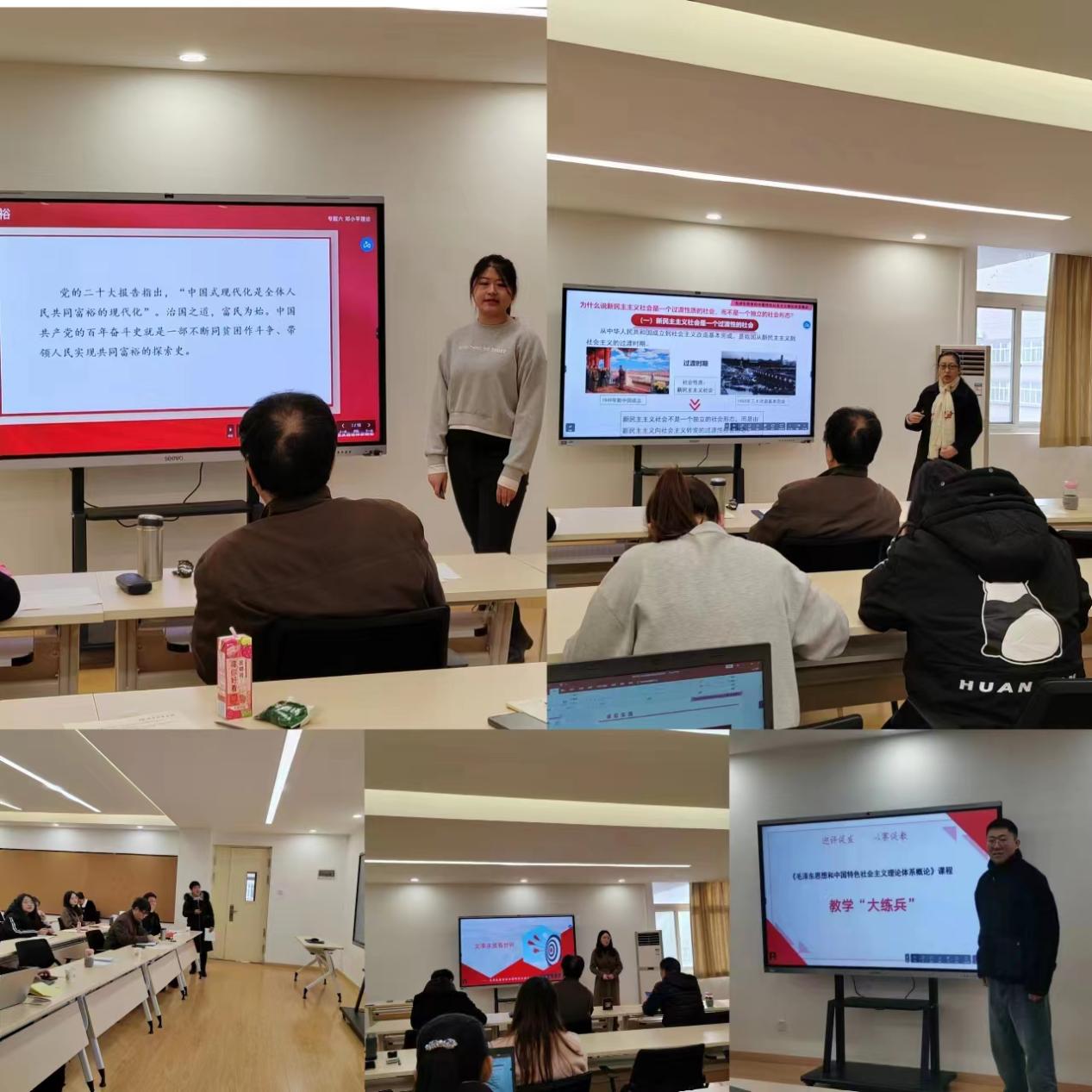 近日,为了加快思政课新进教师培养,让新进教师较快地适应课堂教学,提高教学水平,保障教学质量,2月20日上午,马克思主义学院毛中特教研室在博远楼2501会议室开展新进教师开课前教学大练兵活动。新教师逐个试讲,展示了多样的授课形式,教学内容较丰富,教学方法基本运用得当。马克思主义学院王志平教授、杨权利教授、寇军强副院长、阮博博士等参加练兵现场指导,其他教研室教师现场观摩。毛中特教研室主任袁娜副教授主持活动。