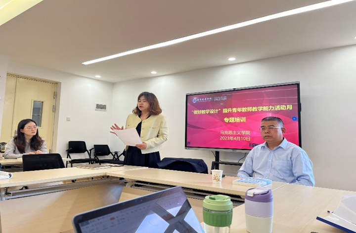为进一步提升青年教师教学能力、提高教学活动的有效性和可控性,减少、克服教学活动的盲目性和随意性,马克思主义学院于2023年4月10日在2501-B会议室举行了“做好教学设计”提升青年教师教学能力活动月专题培训会,会议由马克思主义学院教学副院长霍艾湘教授主持,马克思主义学院全体授课教师参与了此次会议。