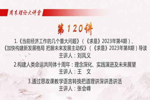 刘凤义教授围绕《当前经济工作的几个重大问题》(《求是》2023年第4期)、《加快构建新发展格局 把握未来发展主动权》(《求是》2023年第8期)进行导读。