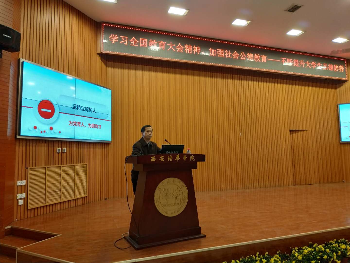 会上,西安理工大学马克思主义学院院长、教授、博士生导师鲁宽民围绕“坚持立德树人,筑牢新时代高校思想政治工作生命线”做主题讲座。