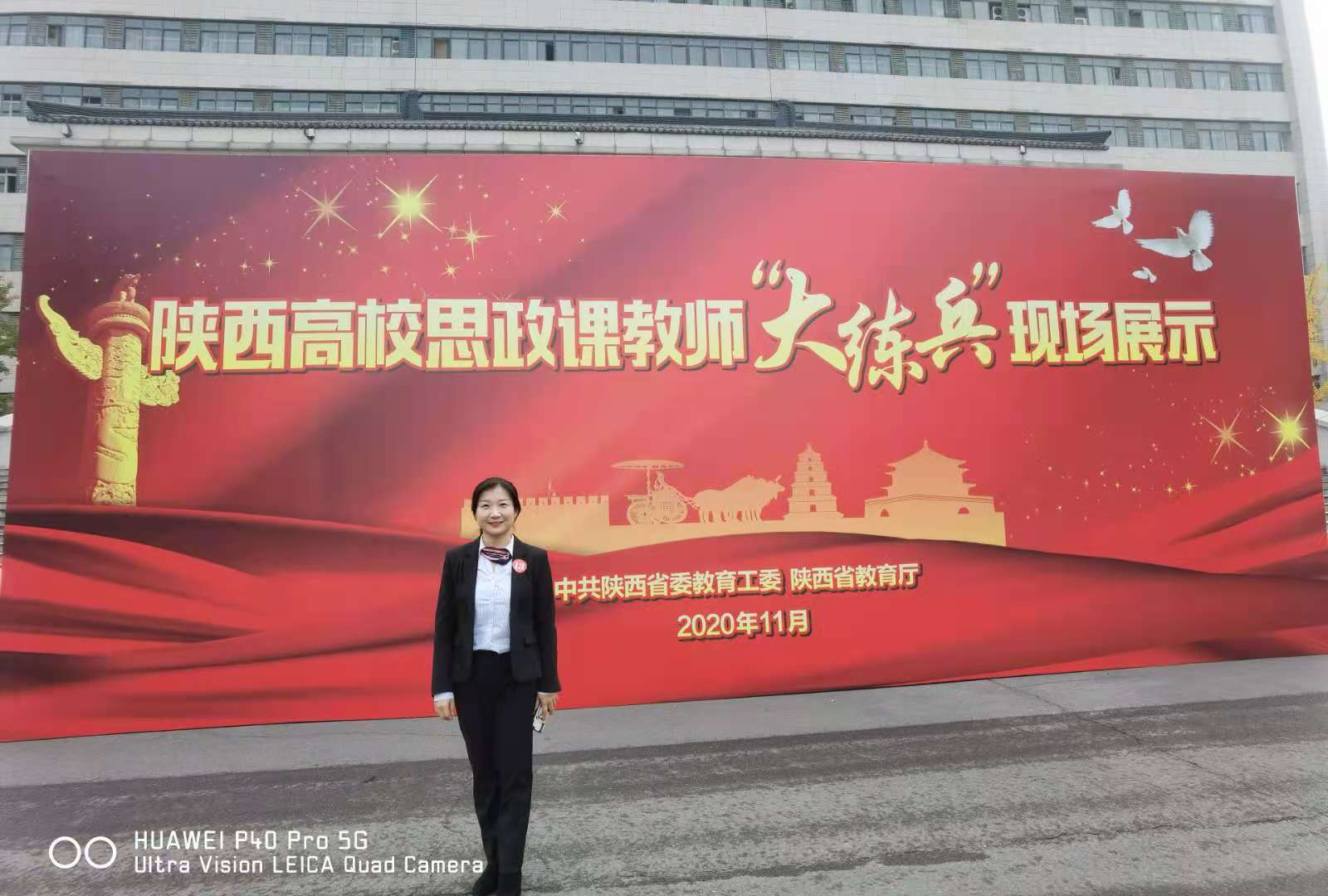 根据《中共陕西省委教育工委 陕西省教育厅关于进一步深化陕西学校思政课教师“大练兵”主题活动的通知》(陕教工〔2020〕126号),经各高校推荐、网络初评、现场展示、专家评审等环节,确定了2020年陕西高校思政课教师“大练兵”省级展示活动获奖教师。我校马院教师潘迎丽凭借精湛的讲课技能和多年的教学积累,经过校级“练兵”、网络评审等环节,在全省4321名思政课教师中脱颖而出,进入省级现场展示,最终获得陕西高校思政课教师“大练兵”思政课程教学标兵荣誉称号。潘老师表示,作为一名青年思政课教师,会把现场展示中所经历的感受转化到今后的教学中,上好每一堂课,做好学生健康成长的引路人。