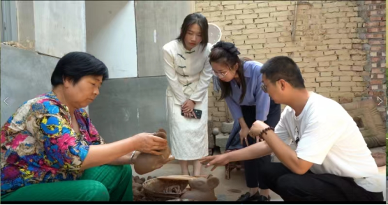 新媒体助宣传,拓展受众群体。7月17日,为了让非遗泥塑能更多走进大众视野,运用新媒体手段推广宣传。在调研过程中,团队成员中播音与主持艺术专业的学生充分发挥专业优势同胡深世家胡小红老师在抖音直播间开展了关于泥塑的制作工艺的互动讲解以及产品介绍的宣传活动。此次直播不仅传播了非遗泥塑的独特魅力,更让古老的泥塑技艺在数字时代焕发新生,也带动了泥塑产业的经济增长。团队成员三下乡期间拍摄了大量视频素材,剪辑成作品后投放到遗风继韵工作室官方抖音平台上,充分展现了非遗泥塑的灵动活力,让传统艺术焕发新彩。