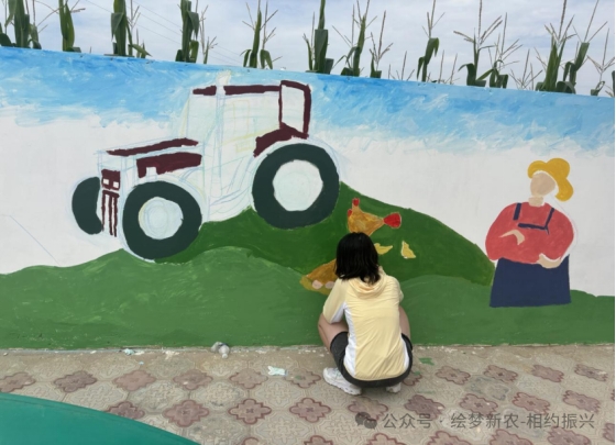 随着乡村振兴战略的深入实施,“绘梦新村 相约振兴”实践团队积极响应国家号召,以墙绘艺术赋能乡村文化振兴,深入乡村开展富有创意的墙绘创作活动。此次活动通过墙绘这一独特的艺术形式,为这个村庄绘就一幅发展特色产业的生动蓝图,不仅为乡村环境增添了亮丽的色彩,更为乡村振兴注入了新的文化内涵和发展动力,以此赋能乡村振兴。