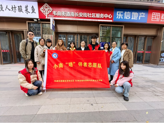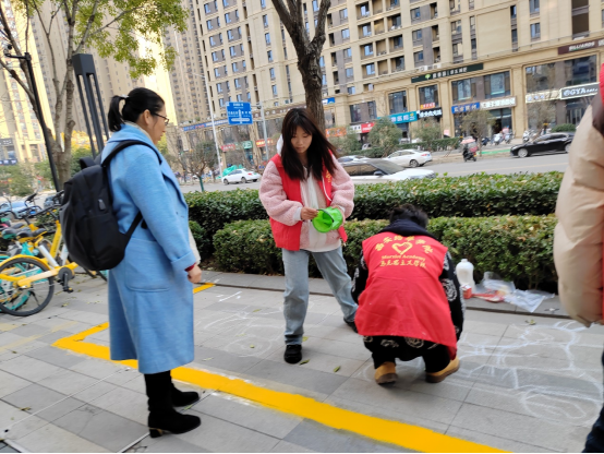 为了加强学校社区的文明共建工作,实现社区和学校双联动,充分发挥马院服务社会的功能,同时进一步推动西培华学院“12.5国际志愿者日主题活动”的实施和开展, 2024年12月3日下午,西安培华学院马克思主义学院教师朱娟丽、刘娟、郭赫哲老师带领2024级服装设计专业斯丹赢、视觉传达设计专业郑艺、陈博俊、韩婷、张岚、史欣妍六名学生前往韦曲街道南长安街社区,参加以“爱心传递,温暖同行”为主题的志愿服务活动,旨在为送餐小哥规划出一片停车位,便捷居民的生活。
