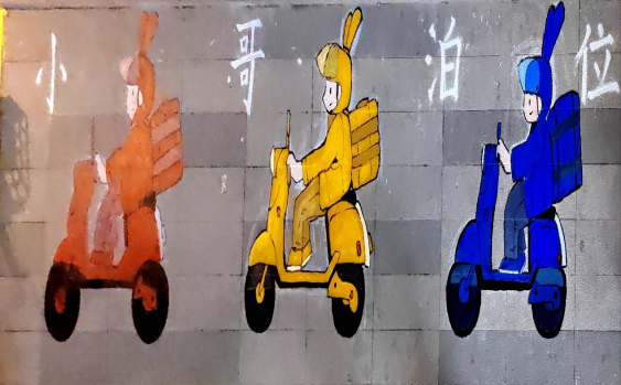 韦曲街道南长安街社区系西安培华学院马克思主义学院的校外实践教学基地,针对进入社区的外卖小哥送餐过程中停车难,送餐不便等问题,南长安街社区规划出三处停车位,西安培华学院马克思主义学院朱娟丽、刘娟、郭赫哲三名老师和六名学生志愿者们根据社区的需求和实际情况,经过协商讨论、选定风格、人员分工后,便开始了“小哥泊位”的文字书写和停车Logo图案的绘画工作。