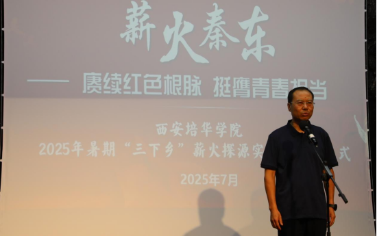在激昂的氛围中,寇军强副院长宣布2025年西安培华学院“薪火探源”实践队“三下乡”活动正式启程。