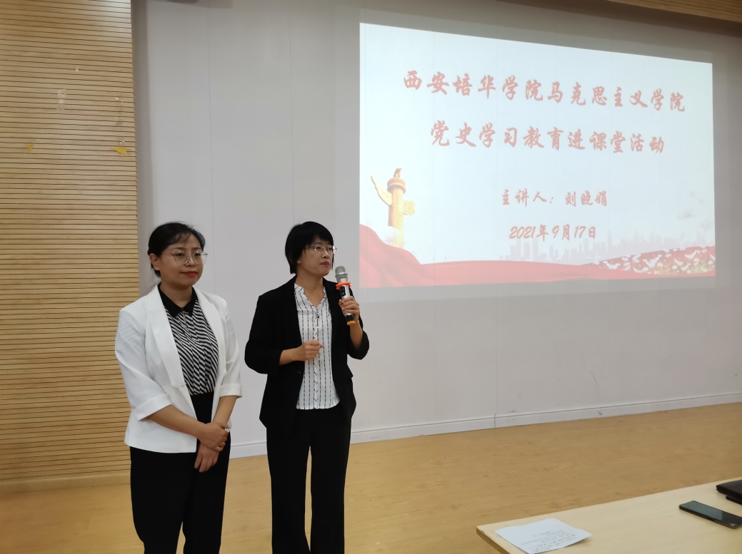 2021年9月17日下午,马克思主义学院党支部邀请西安烈士陵园烈士褒扬科科长刘晓娟老师做党史学习教育进课堂活动宣讲,200多名师生共同参与,题目为《烈士褒扬视角中的党史》。