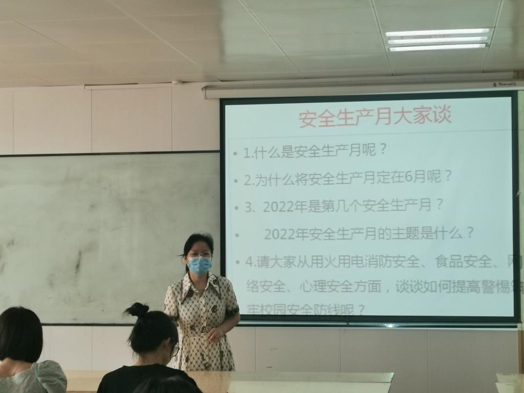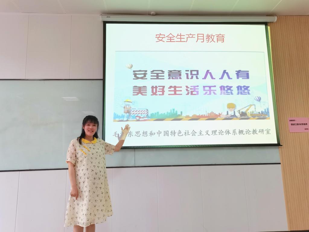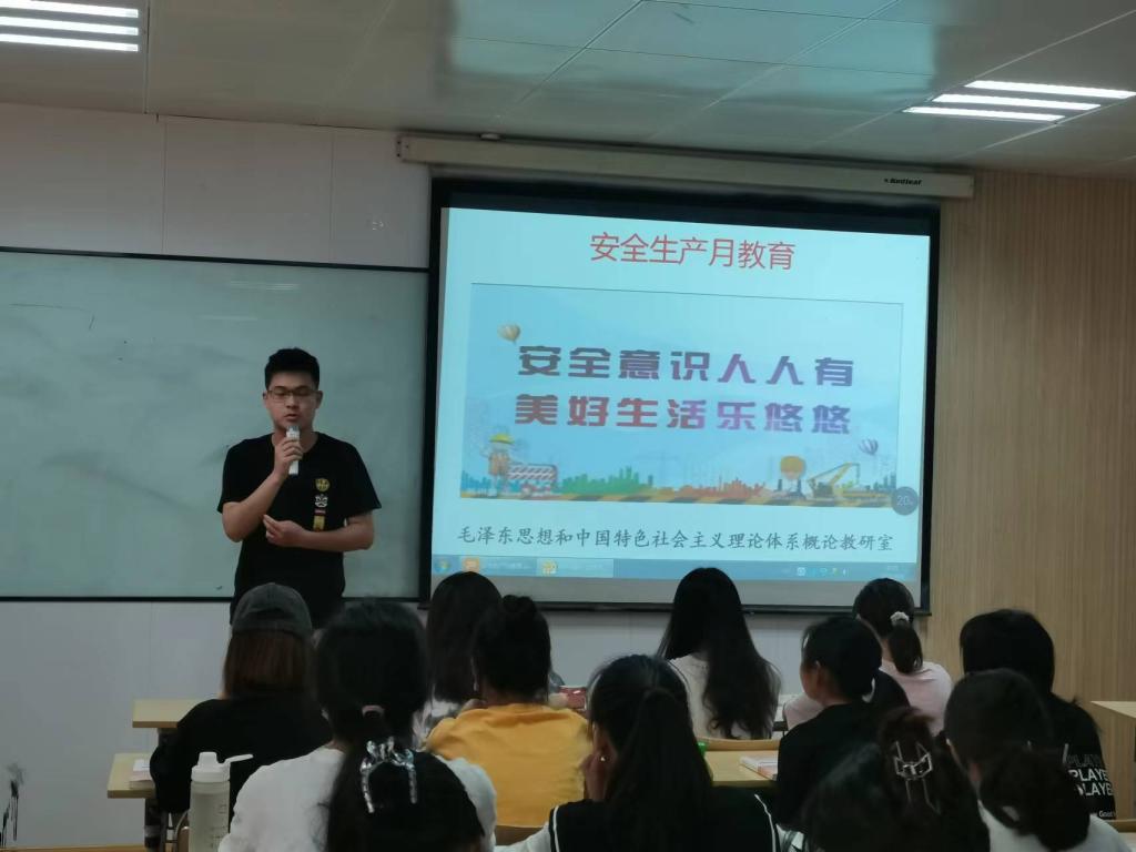 今年6月是第21个全国“安全生产月”,主题为“遵守安全生产法,当好第一责任人”。6月8-13日,马克思主义学院《毛中特》教研室开展了主题讨论、安全教育等多种形式的安全生产教育活动。