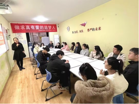 许江莉老师(陕西尚善公益发展中心主任,西安市莲湖区环城西路街道社工站负责人,西安市莲湖区社会组织培育中心创始人,创建西安市首家社区儿童梦想中心和莲湖区婚姻关系调解室。)带领师生参观并介绍西安市莲湖区环西街道社工站工作案例。西安市莲湖区环西街道社工站在社区治理方面具有深厚的历史传统和先进的工作经验,先后获得陕西省妇女儿童工作示范社区、陕西省计划生育工作先进社区,西安市社区建设示范社区、西安市创建国家卫生城市先进单位、西安市退休人员社会化管理服务工作示范社区、西安市促进就业再就业工作先进社区、西安市低保工作先进社区、西安市先进老年协会,莲湖区“师范基层党组织”、莲湖区创建省级计划生育优质服务区先进集体、文明社区、残疾人工作先进社区、创建文明社区先进集体、治安综合治理“安全社区”,2022年荣获“全国先进基层群众性自治组织”荣誉表彰。