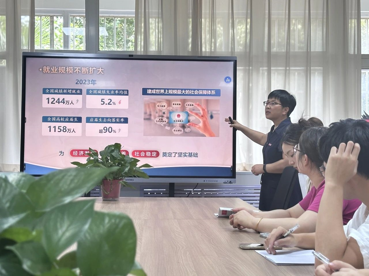 本次讲授围绕“就业形势总体稳定”“就业压力仍然存在”“着力拓宽就业渠道”三个方面。针对高校毕业生就业问题展开详述说明,朱娟丽老师指出,解决高校毕业生问题具有深远的意义,不仅关乎个人的成长与发展,也直接影响到社会的稳定与进步。促进高校毕业生高质量充分就业,需要社会各界的积极推动。