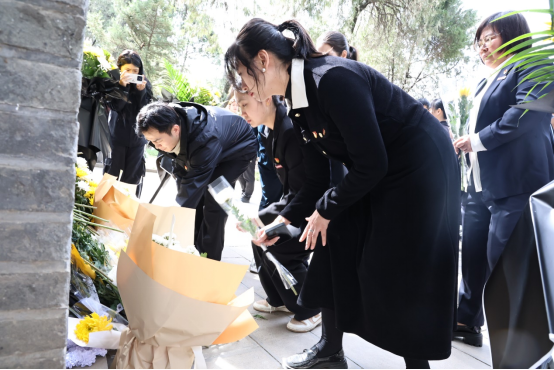 活动最后,大家手持菊花,依次将花朵摆在纪念碑前寄托哀思。全体人员缓步向前,瞻仰烈士纪念碑,表达对革命先烈的无限敬意。