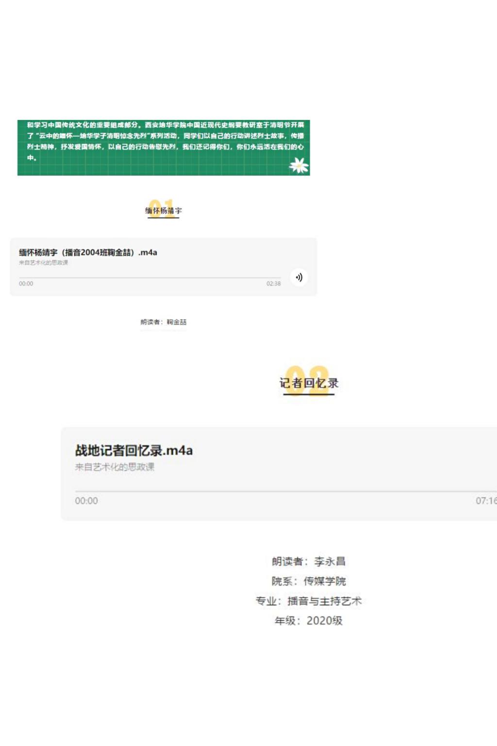 以语音形式讲先烈故事,学习先烈事迹,抒发红色情怀,感受爱国精神。