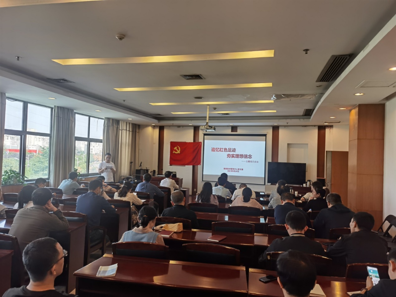 除装校技术研究中心全体党员外,精密计量与先元党支部、检测与环试党支部的党员也应邀参加了报告会。