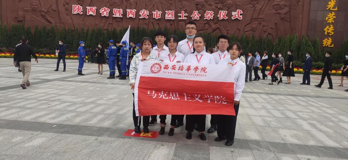 2021年是中国共产党成立100周年, 9月30日是国家设立的第八个烈士纪念日。为缅怀革命先烈,弘扬伟大的建党精神和爱国主义精神,西安培华学院马院赵艳老师于9月30日带领赵伟龄、黄艺、高星瑞等七名学生前往西安烈士陵园参加陕西省暨西安市烈士公祭活动,培华师生在这次活动中主要承担向烈士献花、搀扶烈士家属和贵宾室接待等志愿者工作。