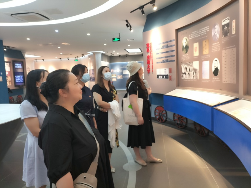 跟着展馆中大量图片、图表、沙盘、实物等资料的呈现,全方位鲜活地再现了交大西迁那段动人的辉煌岁月。看着纪念馆中一张张凝结着交大深厚文化底蕴的老照片,大家心中不禁泛起浓浓的景仰之情。从溯源馆到西迁馆,发黄的纸页上记录着交大走过的风雨路程。在讲解员激情澎湃的讲解中,感怀那一段段动人的西迁故事,为交大深厚悠久的办学历史感慨不已,被西迁前辈们胸怀大局、无私奉献、艰苦创业的西迁精神深深震撼。