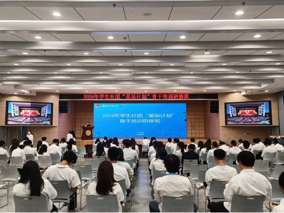6月21日,2024年学生社团“星辰计划”骨干培训研修班结班仪式在恒友楼报告厅成功举行,马克思主义学院文璐老师作题为“坚定‘四个自信’,放飞青春梦想”主题党课,学生社团“星辰计划”骨干培训班学员聆听党课。