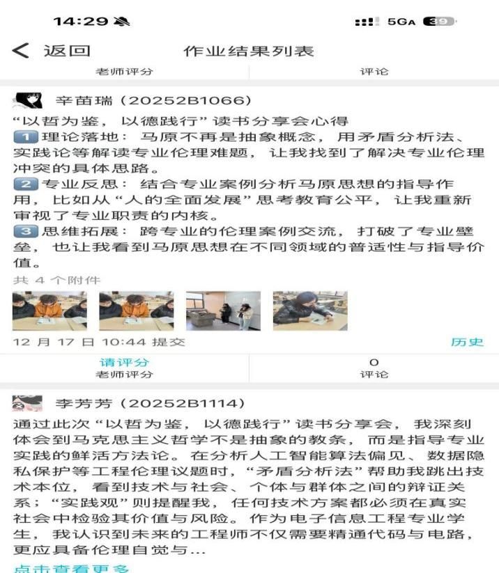 据教研室主任沈永真介绍,本次活动是课程教学改革的一次有益尝试,后续将持续完善“课堂+读书”的教学模式,定期开展经典研读、专题研讨等活动,让马克思主义经典著作成为滋养学生成长的精神养分,助力大一新生树立正确的世界观、人生观、价值观,成长为堪当民族复兴大任的时代新人。