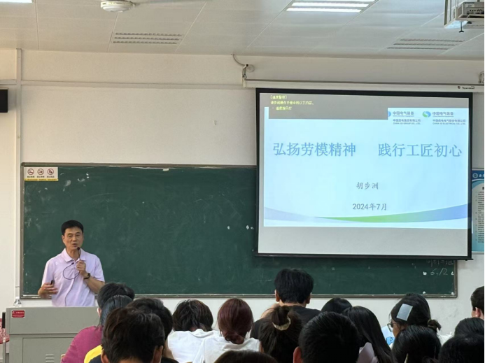 胡步洲老师扎根电气装备行业一线30年,他分享了从“技术小白”成长为全国技术能手的蜕变历程,始终以务实态度深耕专业领域,在传承中突破,于实践中创新。由政府和公司先后授牌成立了“胡步洲劳模创新工作室”,胡步洲老师以此为依托,搭建“传帮带”桥梁,将精湛技艺倾囊相助,实现技术传承与团队能力提升的双向赋能。在国际工程项目的新品实验中,他勇挑重担,带领团队赴欧洲攻克技术难题,使新品试验顺利通过,其成果获得国际行业权威认可,彰显中国电气装备硬核实力。他强调,每一份成绩的都源于对岗位的热爱与坚守,新时代的青年要敢于吃苦、勤于学习,在平凡的岗位上创造不平凡的价值。同时,他还鼓励同学们扎实学好专业知识,提升实践能力,争做新时代知识型、创新型人才。