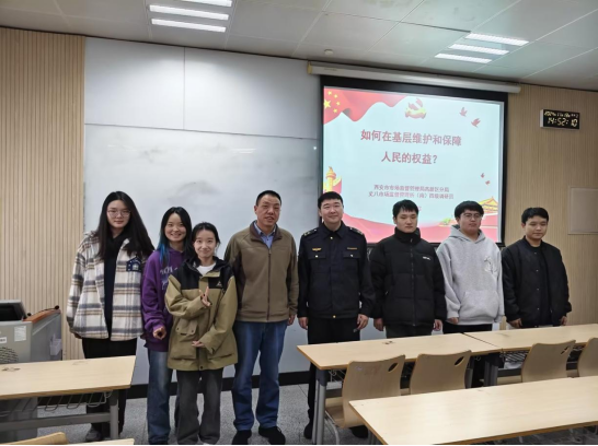为进一步增强思政课的丰富性和感染力,习近平新时代中国特色社会主义思想教研室于2024年11月13日举办了“行业精英”进课堂活动。本次活动邀请到了西安市市场监督管理局高新区分局丈八市场监督管理所(南)四级调研员陈鑫同志进到汉语言文学20230910班和电子信息工程20230102班开展情景式教学。