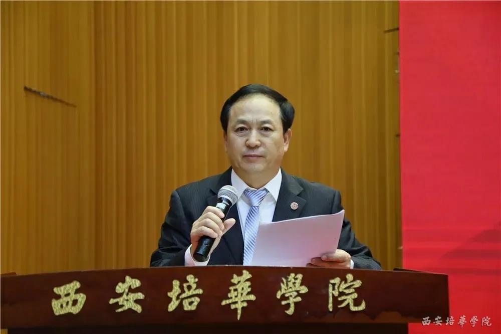 常务副校长胡俊生宣读《西安培华学院关于表彰 2019-2020 年度教学系统荣获省级以上奖励的通报》《西安培华学院关于表彰 2019- 2020 学年优秀教师、优秀辅导员、先进工作者的通报》