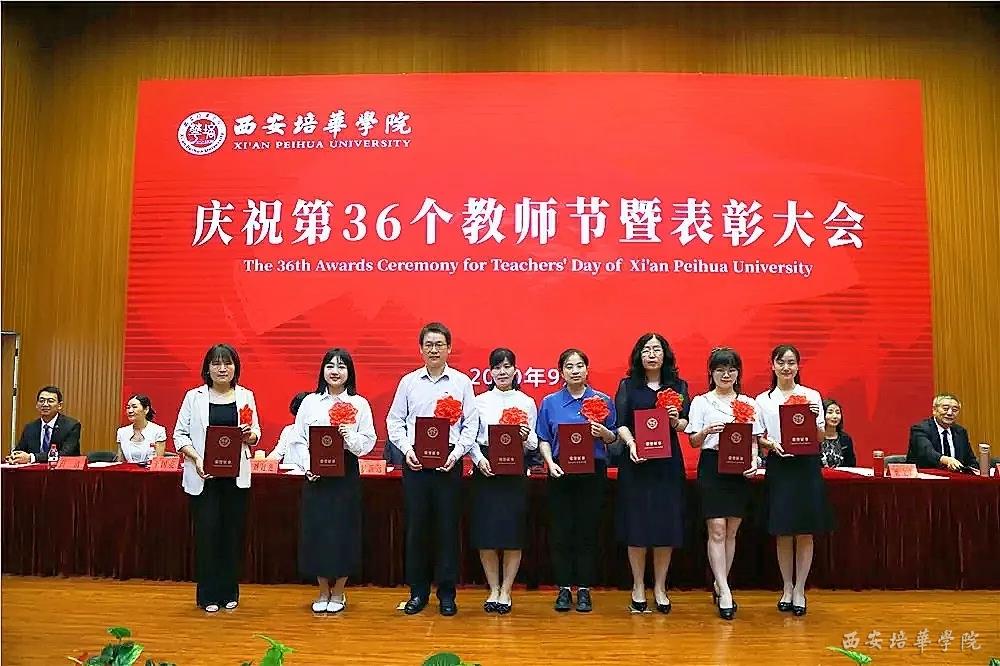 9月10日下午,西安培华学院在维之图书馆报告厅举行2020年庆祝教师节暨表彰大会。全体校级领导,各院(部)、中心负责人、教师代表、辅导员代表共300余人参加了会议。