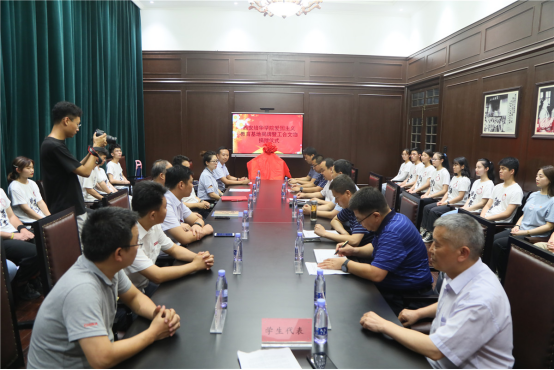 在揭牌仪式上,宁怀彬与罗新远共同为西安培华学院爱国主义教育基地揭牌,双方表示将共同打造对大学生进行爱国主义教育的新载体和平台,努力秉承“努力干、一起干”的工合精神,充分发挥双方的优势资源,携手打造资源共享、教研互动、协同创新、特色鲜明的爱国主义教育基地,使基地成为高校开展爱国主义教育、核心价值观教育的示范和样板。会上,18级网络新媒体专业腊林涛同学代表三下乡实践队员发言,介绍实践活动的开展情况并表态。