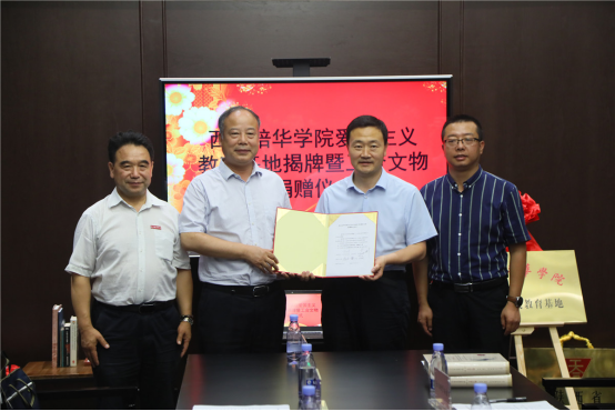 金台区委书记、蟠龙新区党工委书记宁怀彬与罗新远书记为西安培华学院爱国主义教育基地揭牌