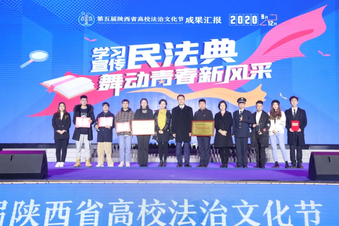 大会表彰了“五个一”优秀文艺作品、原创法律新媒体获奖作品、“法典先锋”冲关答题挑战赛优秀个人、“法典先锋”冲关答题挑战赛优秀团队、“第五届陕西省高校法治文化节”优秀组织单位等。