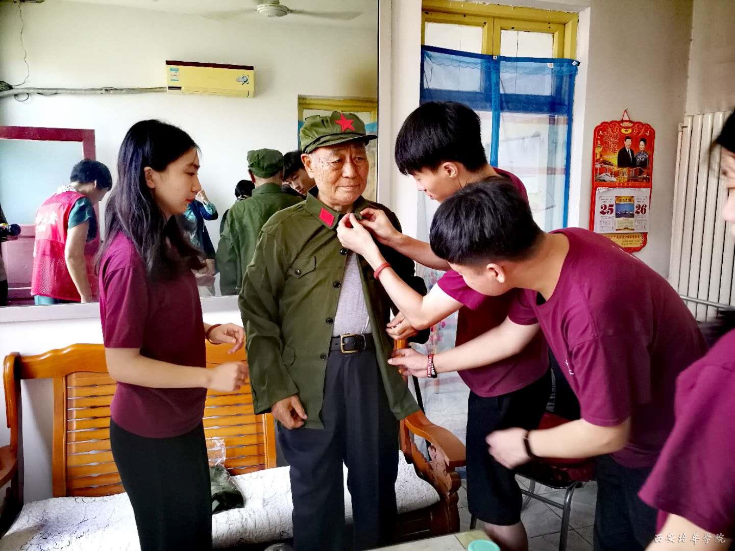 八一建军节前夕,西安培华学院学子开展“慰问老红军战士,传承红色革命精神”为主题的党团活动。活动分为慰问老红军革命战士、重温入党誓词、学习教育座谈会三个部分。