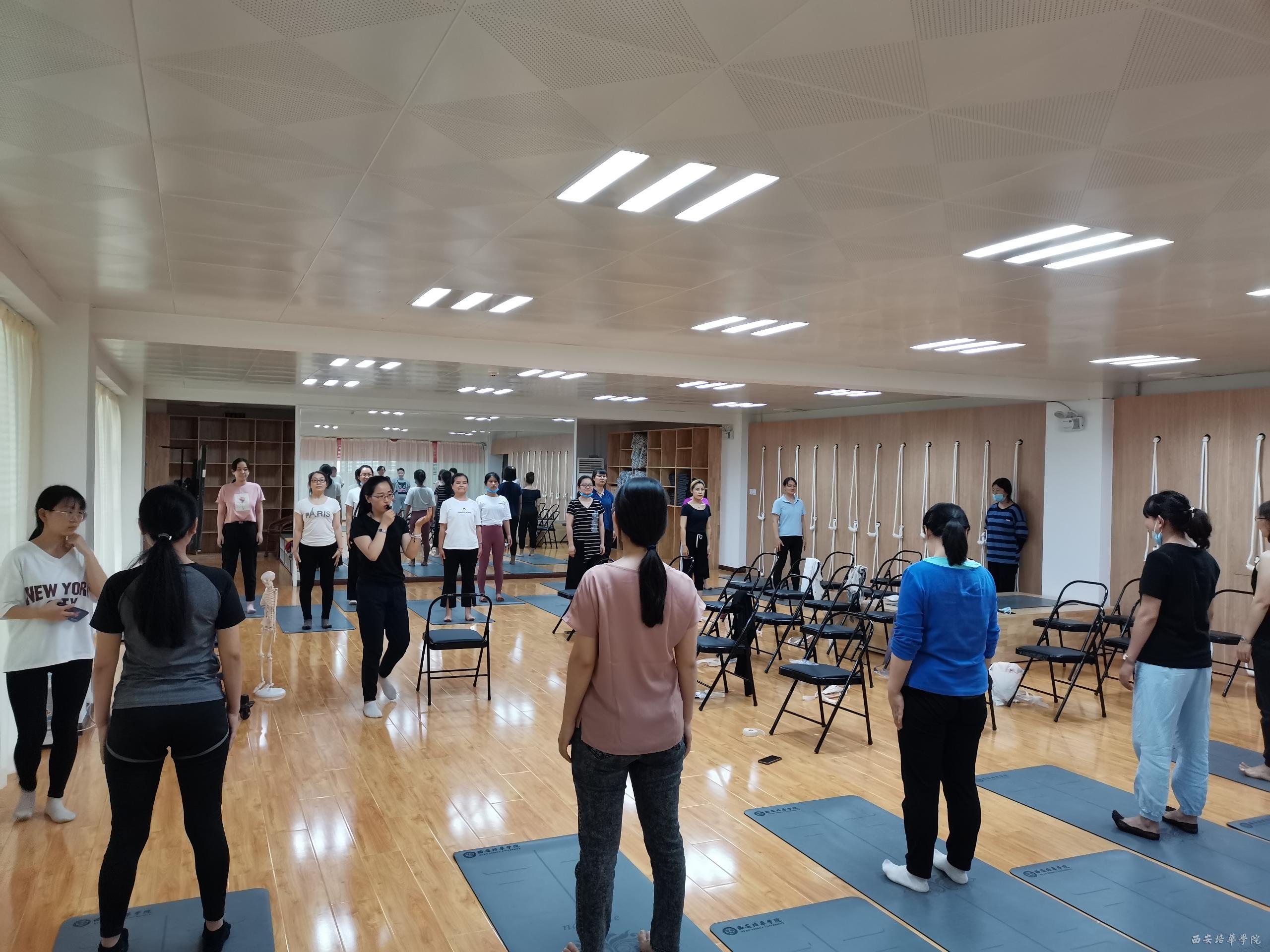6月12日下午,由教师发展中心主办、体育中心承办的第十期教学沙龙在明德楼三楼东侧科学瑜伽室进行,这也是本年度最后一期教学沙龙活动。来自各院系、各部门的近30名教职工纷纷积极报名参加“科学瑜伽”。此次沙龙的主持人是体育中心副主任马德厚副教授,之后则由体育中心瑜伽俱乐部主任孙焕梅老师为我们解说和展示了“科学瑜伽”的理念和宗旨。