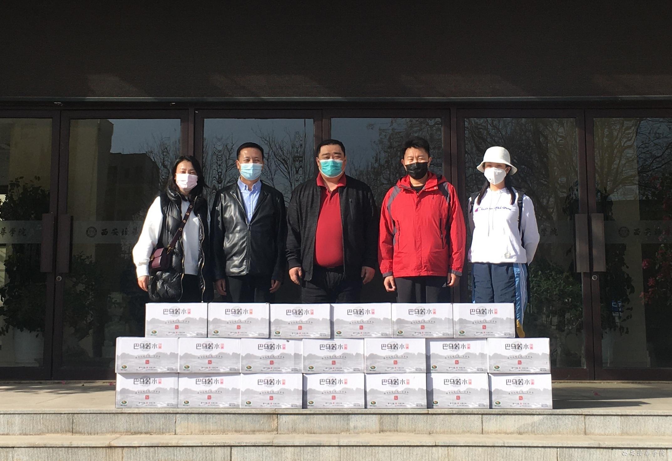 巴马若水公司员工代表带着20余箱来自广西世界长寿之乡的巴马若水慰问西安培华学院一线抗“疫”工作人员,助力抗疫。