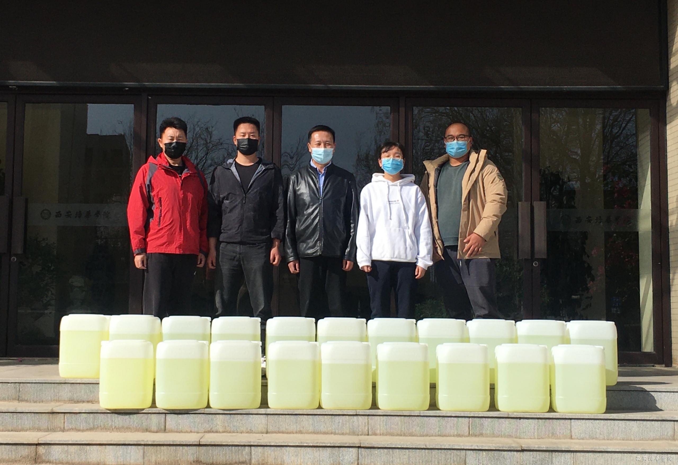 18届建筑工程管理专业张琦和张欢,19届会计学专业杜俊和邢芷瑜四位校友向母校捐赠消毒液20桶1000斤。据悉,在校期间,四位校友均为学校红十字会学生分会的骨干,看到校友会发布的防疫物资捐赠倡议书时,他们立即行动起来,边上班边联系购买抗“疫”物资,趁着周末赶紧将物资送到母校,助力学校抗疫,希望学弟学妹们能早日到校上课。