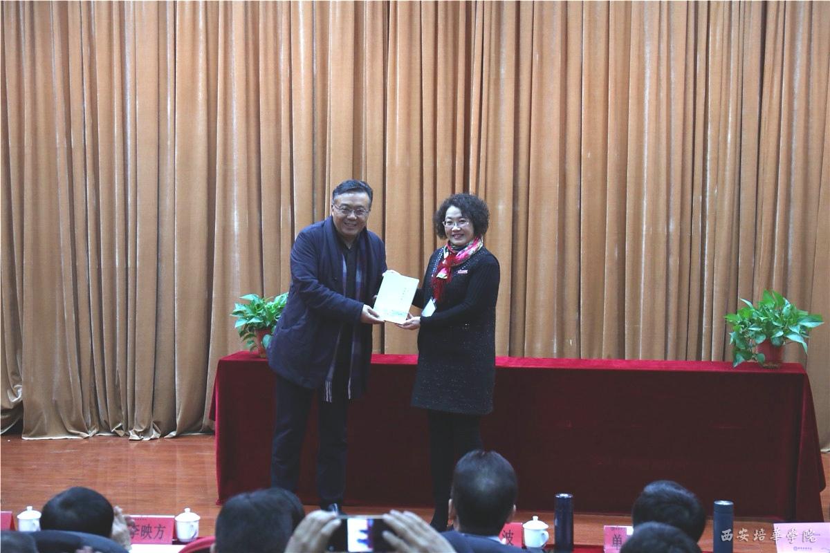 西安培华学院理事长向张洪斌颁发客座教授聘书