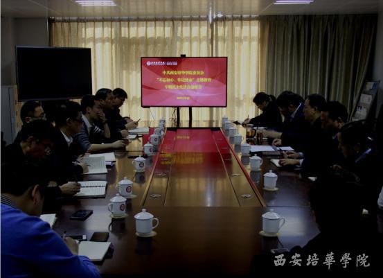 12月10日下午,西安培华学院2019年度领导班子“不忘初心、牢记使命”专题民主生活会情况通报会在明德楼第二会议室召开。校党委委员,中层领导干部,各学院党委(党总支)书记、副书记,全体党支部书记参加了会议,会议由党委书记胡俊生主持。