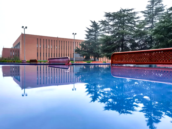 “水天溶漾画桡迟,人影鉴中移。”风平雨静时,维之图书馆、至善楼...同雨中倒影相映成趣。