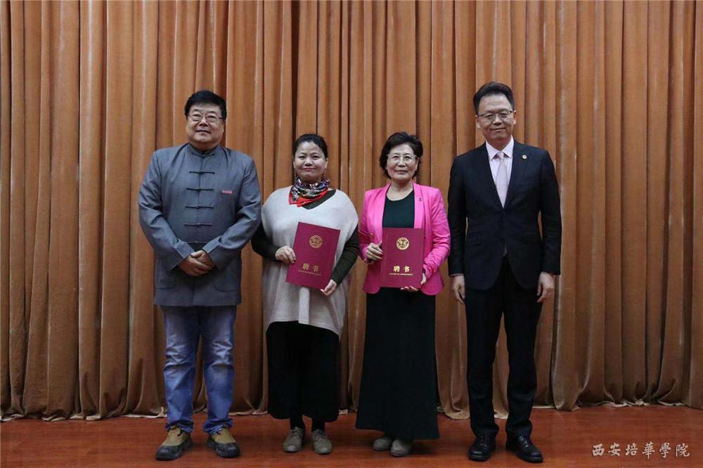 揭牌仪式现场,西安培华学院理事长姜波致欢迎辞。姜波理事长希望能通过此次合作,帮助学生们看世界、看中国、看自我不足,从而进一步深入教学改革,助力老师和学生们做出作品、做出产品,推动我校教学水平提升、推动我校蓬勃发展。随后,姜波理事长为华视传媒集团总裁杨莉、美国乔报记者兼华视传媒集团市场总监杨扬颁发客座教授聘书,对两位教授加入我校传媒教育教学表示热烈欢迎。