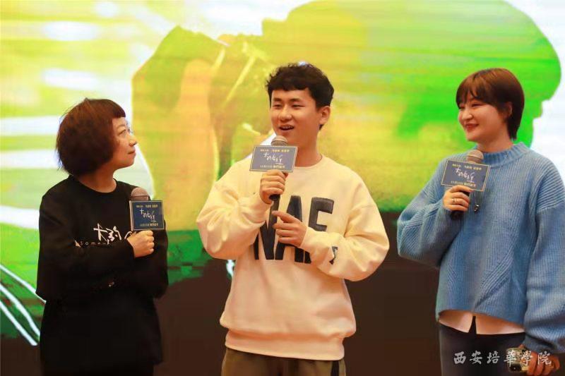 活动现场,导演王维明和编剧饶雪漫上台分享自己的感受和经历,并与在场师生亲切互动。