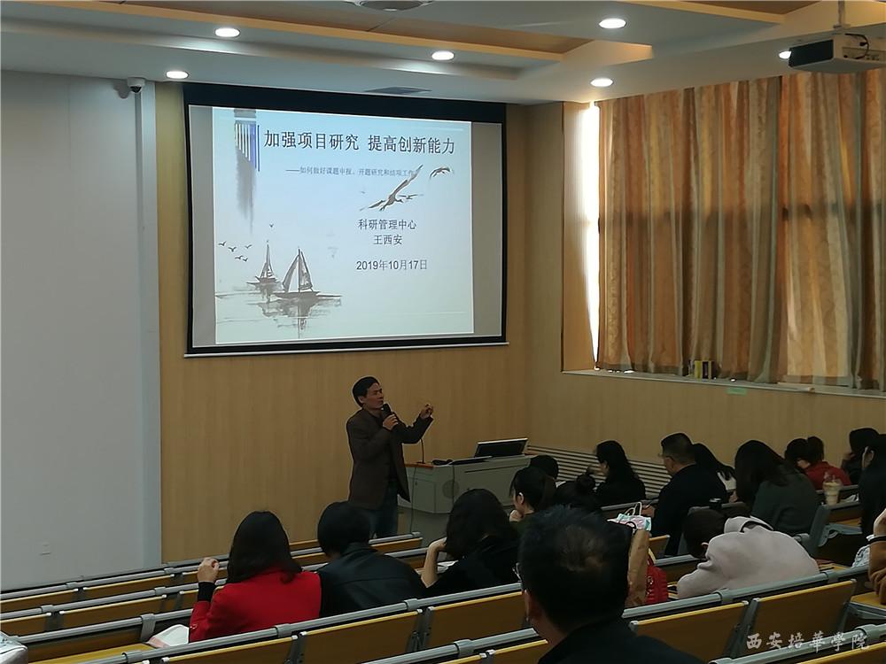 10月17日,科研管理中心主任王西安教授为新入职教职工介绍了如何做好课题申报、开题研究和结项等工作,同时他还鼓励新入职教师努力提高科研能力、创造科研成果。