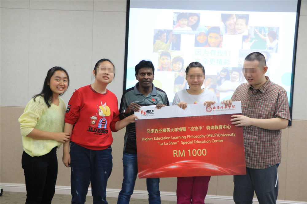 10月11日,“我们在路上”西安培华学院与马来西亚精英大学的交流活动继续进行。当天,两校教师及学生代表共同走进西安市碑林区“拉拉手”特殊教育中心看望慰问自闭症儿童及智力障碍青少年,参观特殊教育中心、与来自“星星的孩子”互动游戏、共同体验音乐课堂。