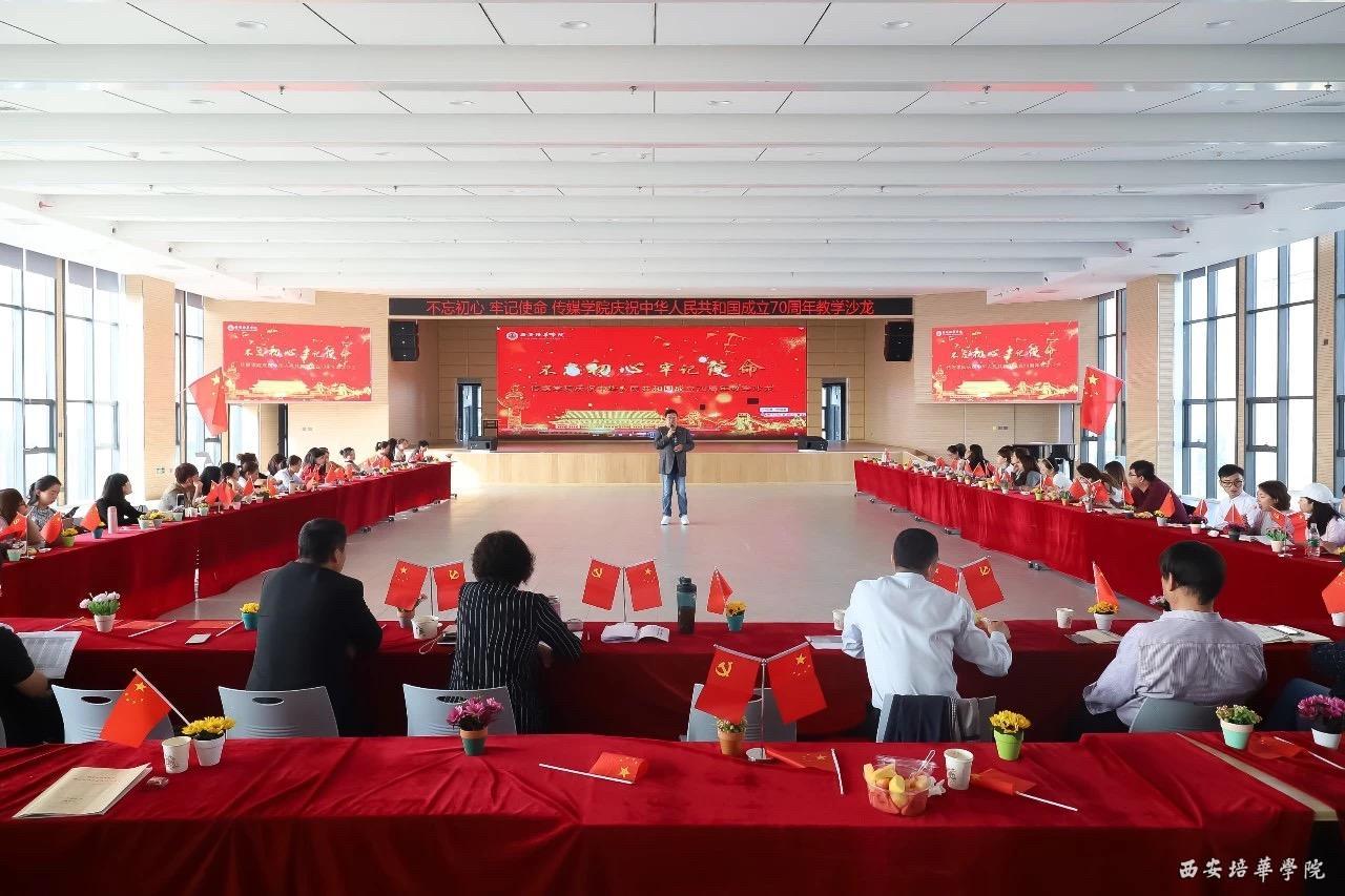 为了推进课程思政教育教学工作的建设,正值国庆来临之际,9月27日,由教师发展中心主办、传媒学院承办的大型红色教学沙龙活动在恒友楼报告厅举行,以庆祝中华人民共和国成立70周年。沙龙以”不忘初心,牢记使命”为主题,传媒学院教师以及来自其他二级学院的80多名教师展开了精彩而热烈的分享与交流。