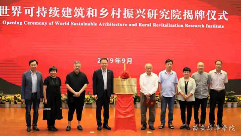 西安培华学院理事长姜波出席活动并讲话,他表示:“希望培华的学生能够“学以致用,用以致学”。希望你们能赋予建筑生命,建造可呼吸的建筑。中国大地需要这种可持续建筑,人与自然生态化的建筑。希望这场交流会能让培华老师境界得到提升,希望有利于乡村振兴,让中国人的智慧走向世界。”随后,他向谢英俊先生颁发聘书,聘请谢英俊先生为建筑与艺术设计学院客座教授。姜波理事长、谢英俊教授、建筑与艺术设计学院院长易介中及参与嘉宾共同参与《世界可持续建筑和乡村振兴研究院》揭牌仪式。