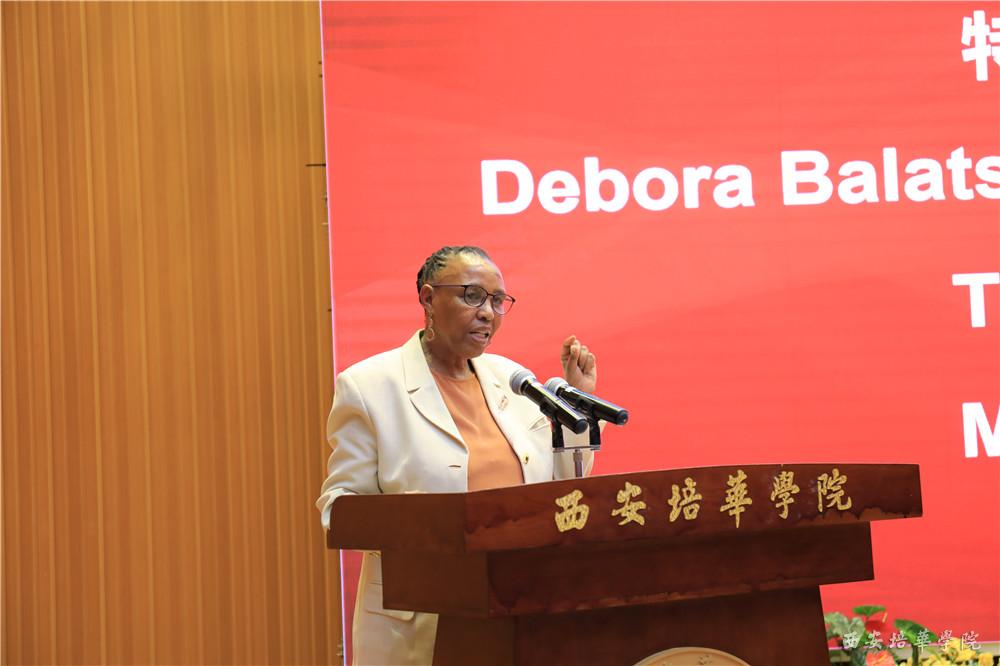 随后,Debora Balatseng公使详细介绍了南非的基本国情,包括:地理风貌、人文风俗、政治制度、经济贸易、教育现状等基本情况。她感谢了我校的亲切接待,肯定了我校在女性教育方面做出的努力和成果。她同时指出,目前是中国和南非双边关系的顶峰时期,中国是南非最重要的战略合作伙伴之一。她号召我校学生去南非旅游、留学,亲自去感受真实的南非。在提问环节,我校师生踊跃提问、热烈发言,就人权、风俗、留学、美食、旅游等问题跟南非驻华大使馆代表团成员进行了积极交流。