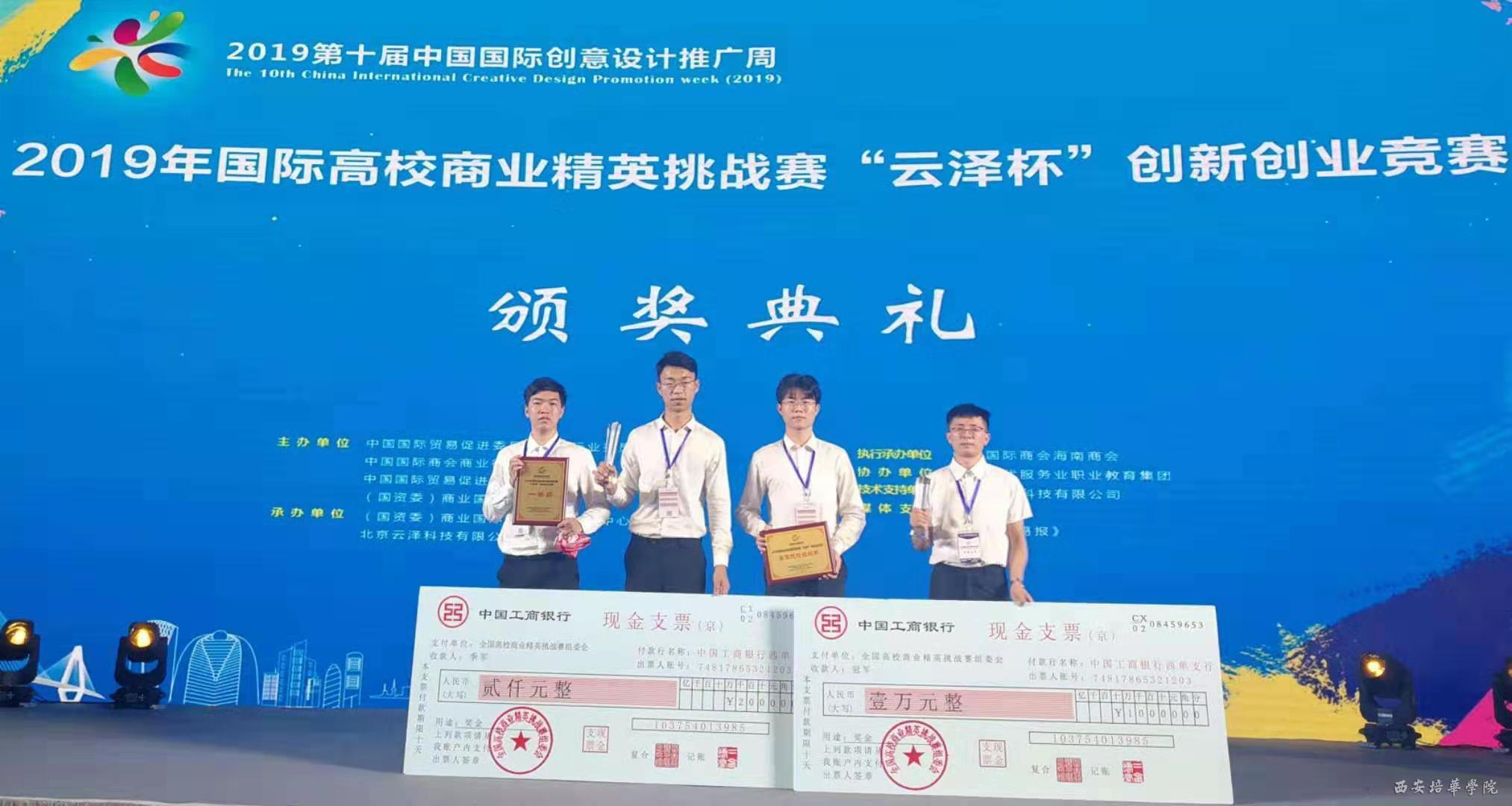 8月15-17日,2019年第十届中国国际设计推广周暨国际高校商业精英挑战赛“云泽杯”创新创业竞赛在海南省海口市举办。我校学子荣获全国一等奖两项(创业组冠军,创客组季军)、二等奖一项、学校荣获最佳院校组织奖。