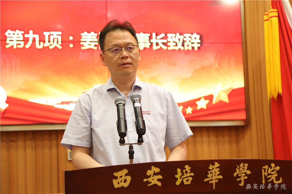 姜波理事长在讲话中回顾了培华的红色历史,激励培华人不忘初心,砥砺前行。他表示,老校长姜维之一生坚持以一名共产党员的标准要求自己,为教育事业奉献了全部精力。他强调,在培华学院发展历程中,始终离不开党和政府的关怀和支持。他希望培华的教育工作者要保持高度的责任意识,为中国高等教育事业的改革发展作出贡献。