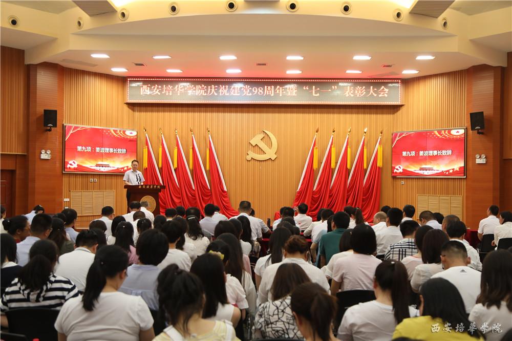 七月一日,西安培华学院隆重召开庆祝中国共产党建党98周年暨“七一”表彰大会。西安培华学院理事长姜波,校党委书记胡俊生,校长李映方,党委副书记、副校长姚文静、教职工党员代表及部分学生党员代表参加了表彰大会。会议由党委副书记、副校长徐国富主持。