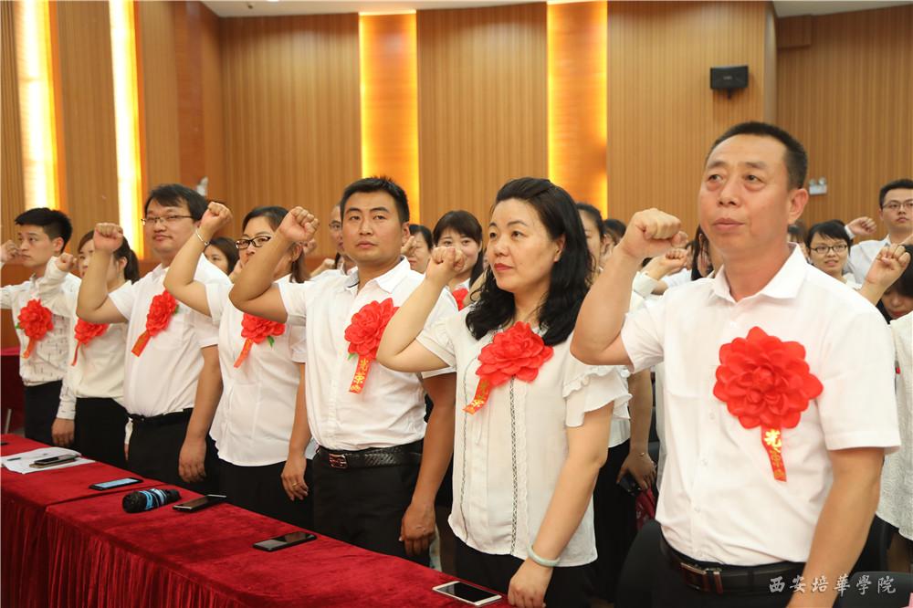 党委委员唐学学带领全体党员在党旗下庄严宣誓,重温入党誓词。庄严的誓词体现出培华共产党人不忘初心、砥砺前行的决心和意志!