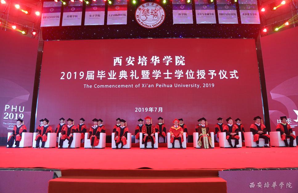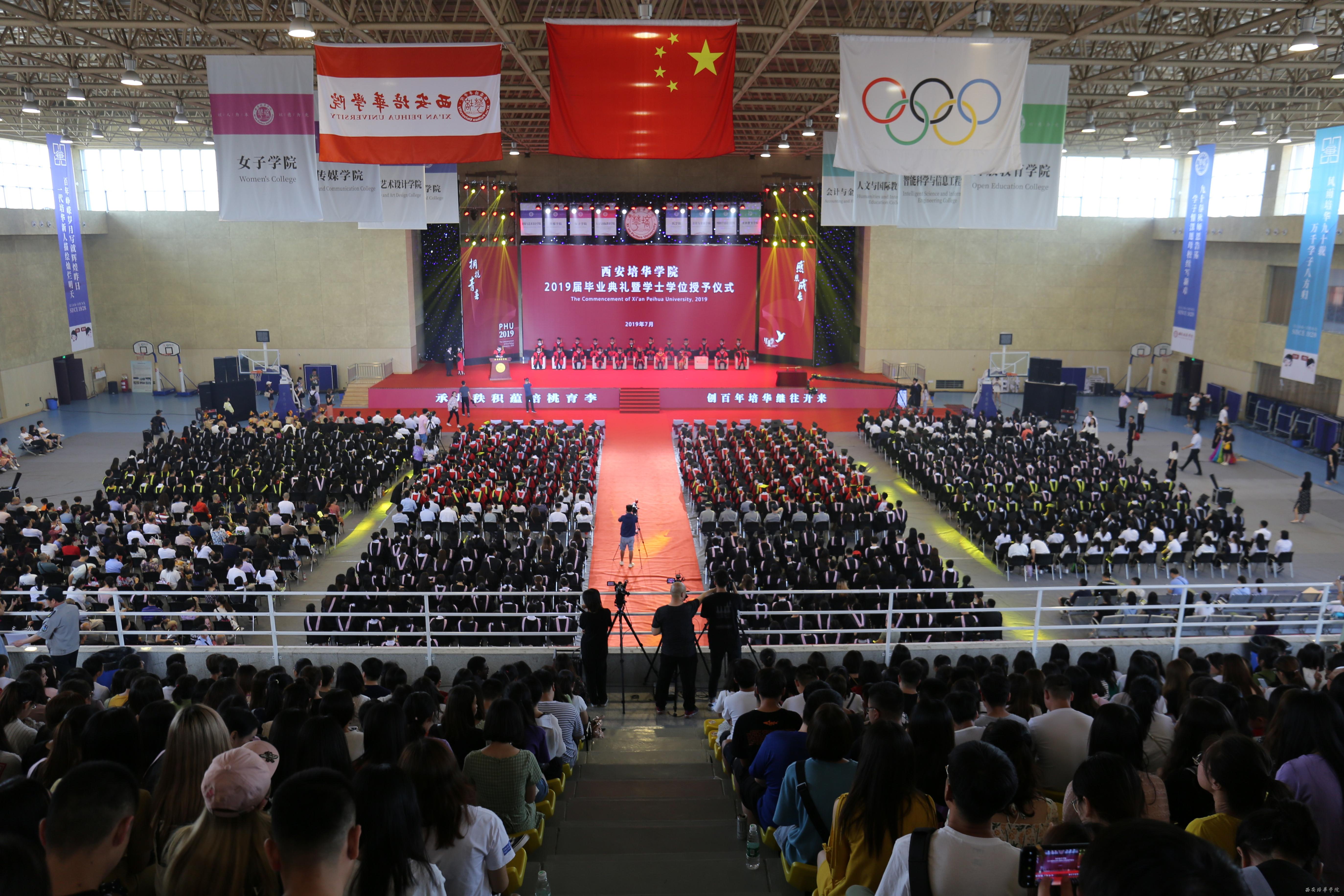 7月6日上午,西安培华学院在五棵松体育馆举行2019届毕业典礼暨学位授予仪式。全体校级领导、学位委员会委员、全体中层领导、教师代表、辅导员代表、毕业生家长代表、校友代表、2019届毕业生代表三千余人参加。