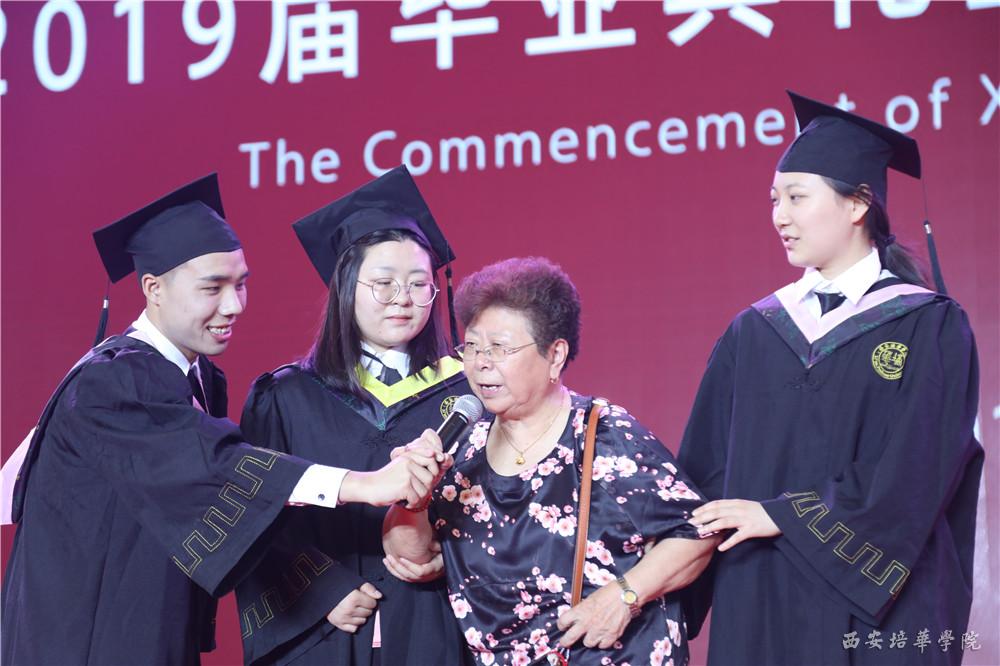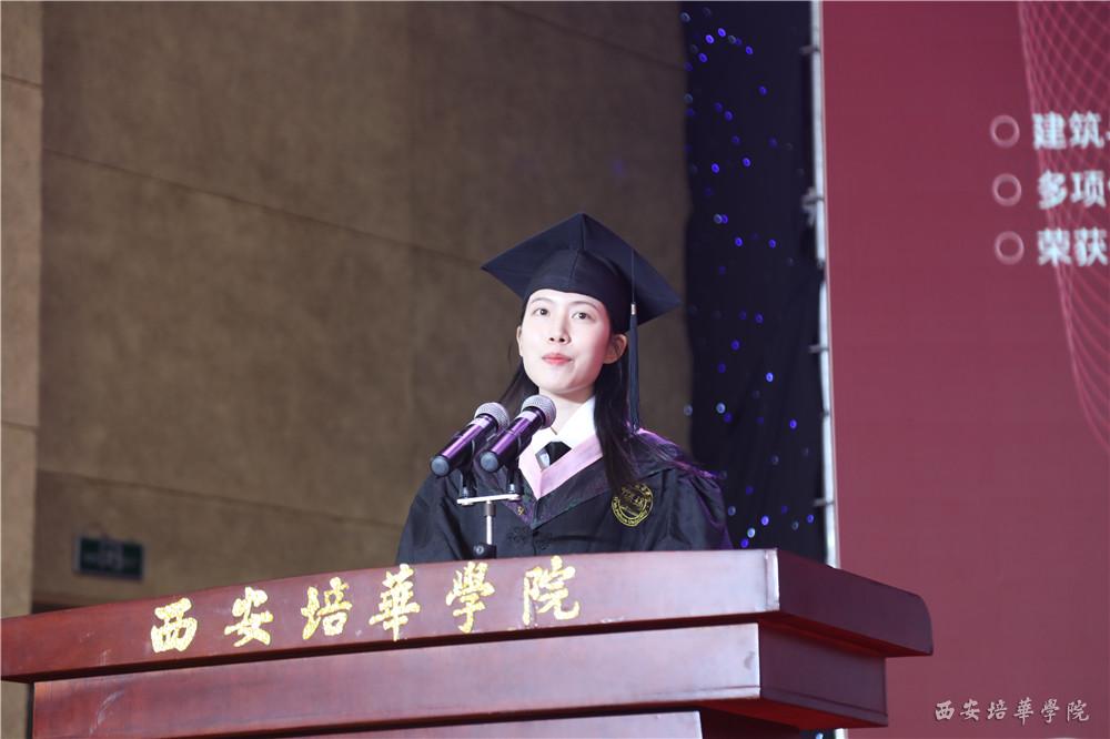 建筑与艺术设计学院 服装与服饰设计专业2019届毕业生余丽红同学作为毕业生代表上台发言,她用真挚朴实的语言讲述了自己的心路历程。她说:“以后无论走到哪里,我们都要用最真诚的态度面向人生;无论走到哪里,记得我们都是培华人!”