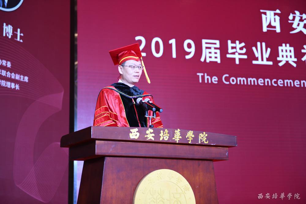 于国亮副校长宣读《西安培华学院关于2019届全日制普通本专科学生毕业(结业)的决定》