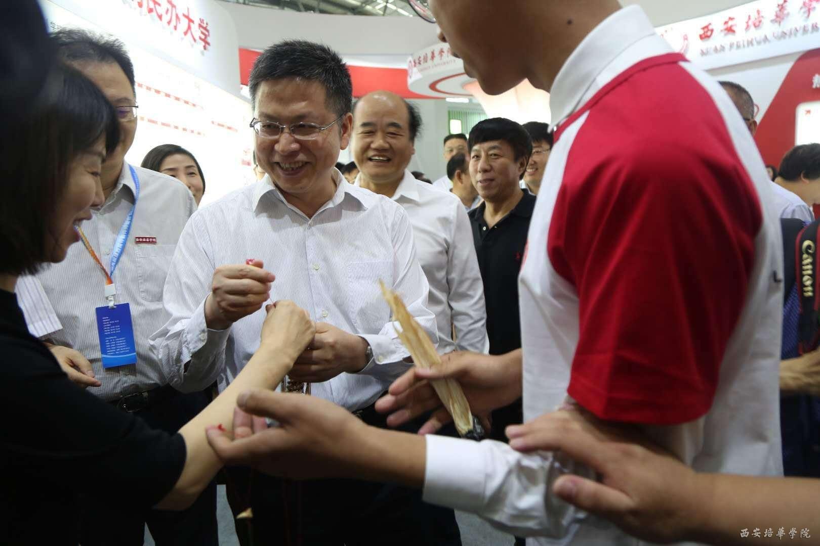 西安培华学院作为本科二批次招生对象参加了展览会,陕西省副省长方光华,省政府副秘书长高阳,陕西省委教育工委书记董小龙,陕西省教育厅厅长王建利,副厅长刘建林等领导到场莅临培华展位参观指导。